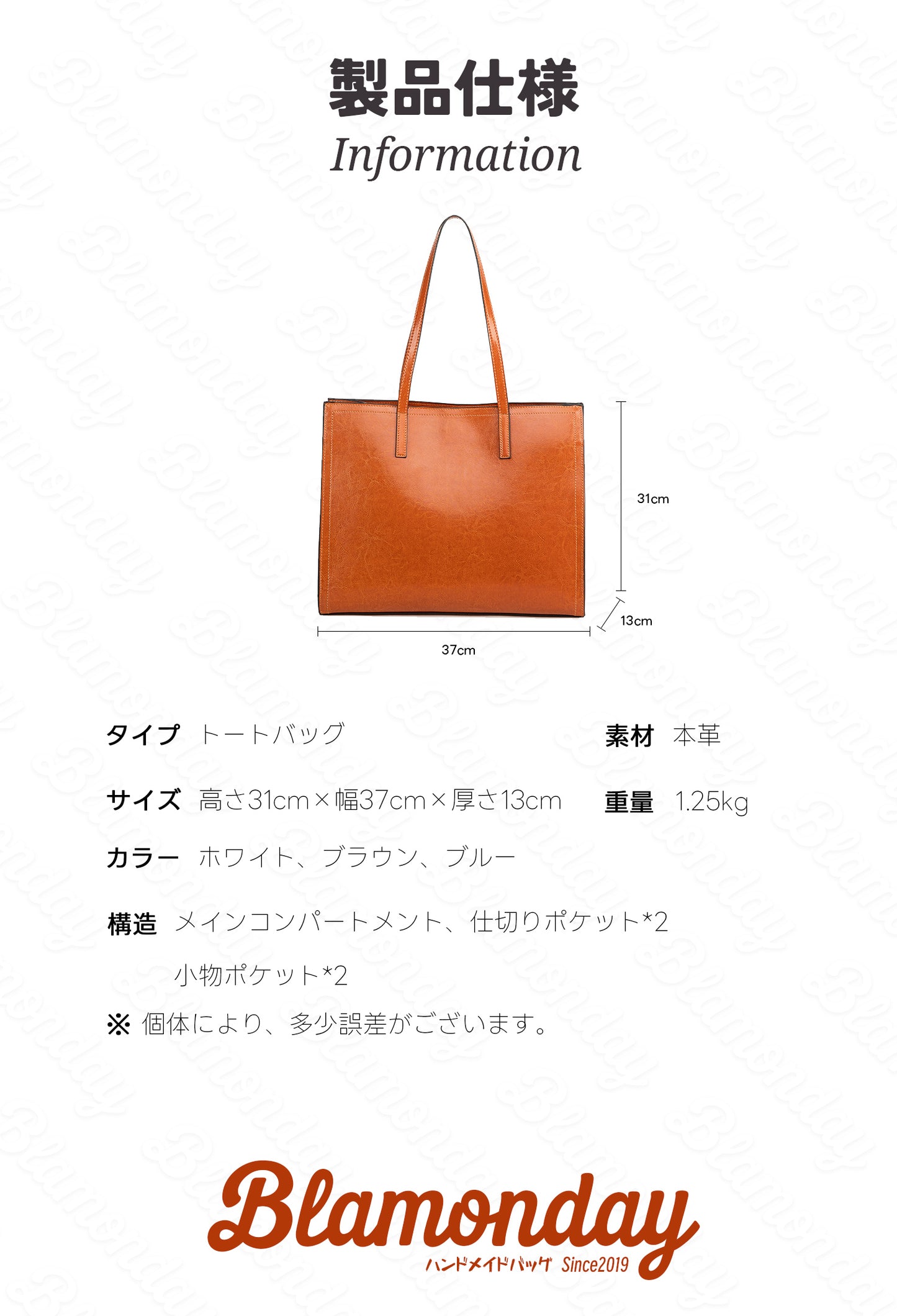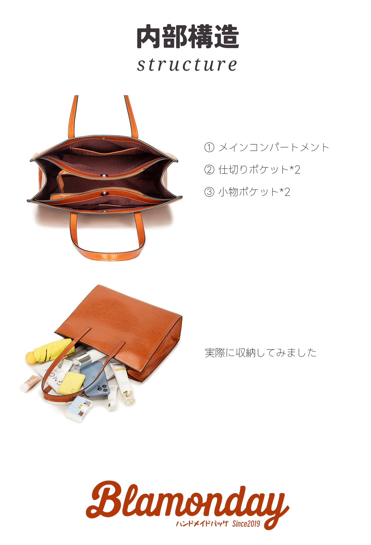 トートバッグ レディース 本革 a4収納 2way 無地 ビジネス カジュアル WTZB-007