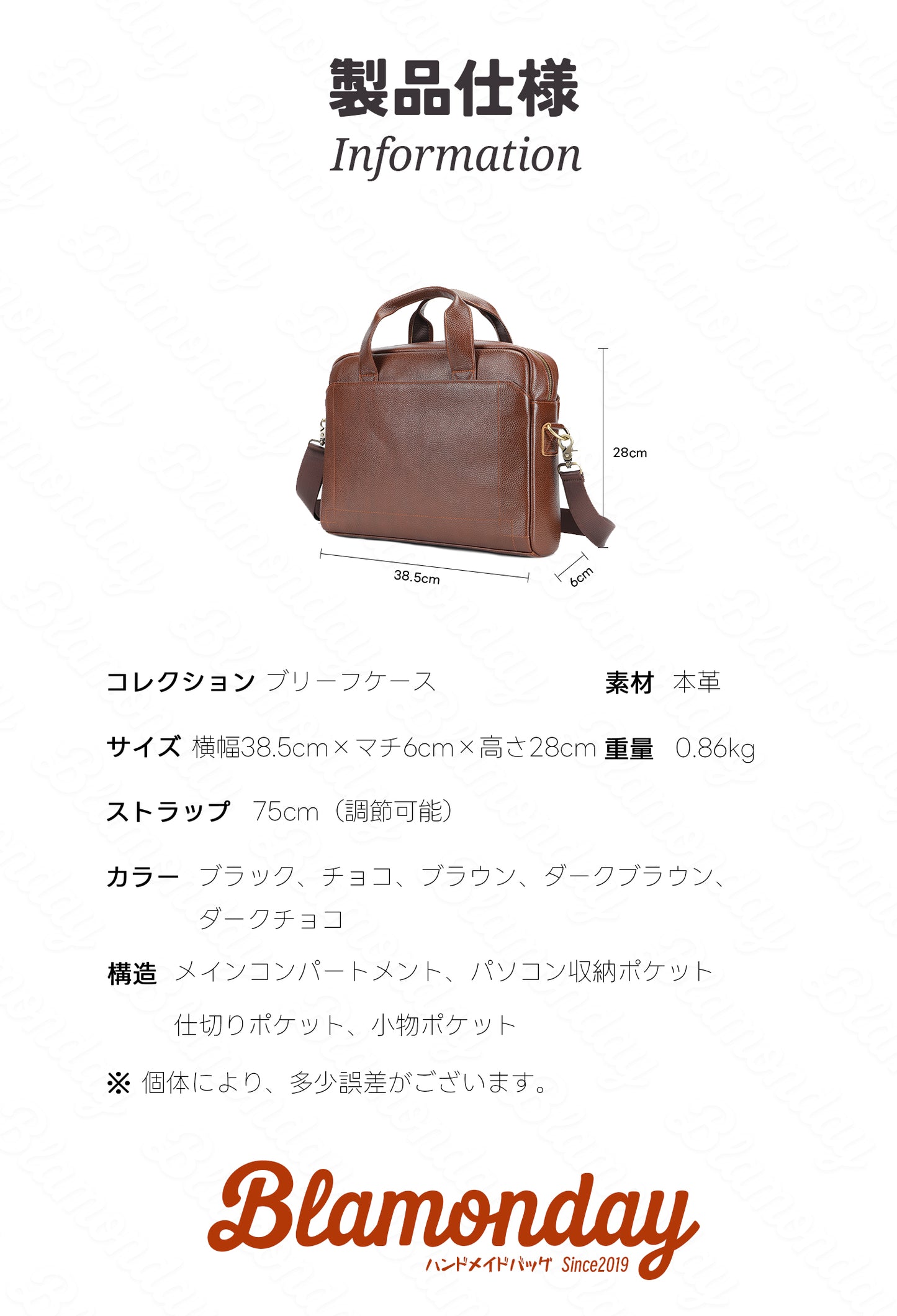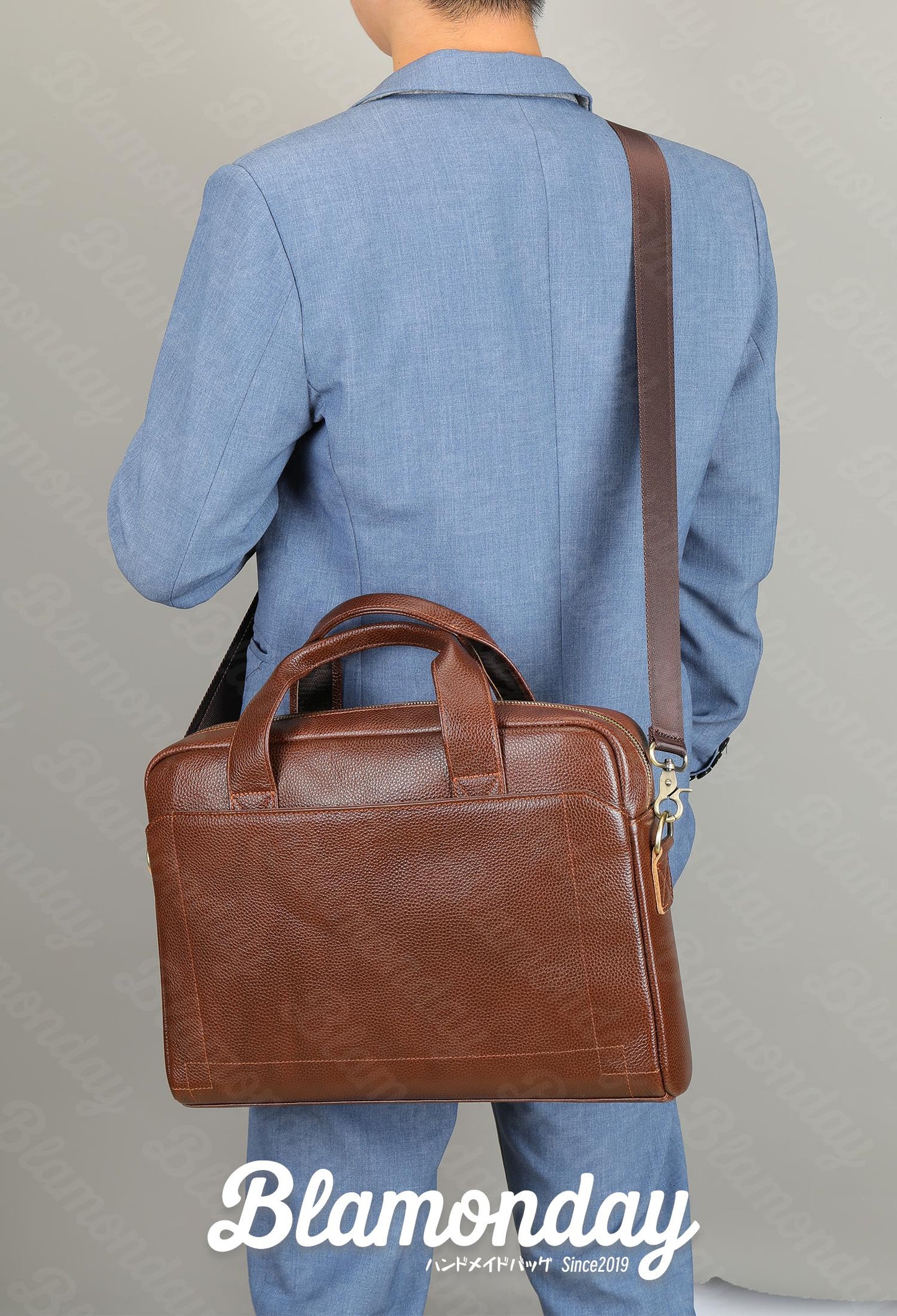 ビジネスバッグ ブリーフケース メンズ 本革 シュリンクレザー 大容量 カバン 2way a4 パソコン収納 15.6インチ対応 撥水 ポケット多い ストラップ付き 通勤 出張用 無地 MGZA-005