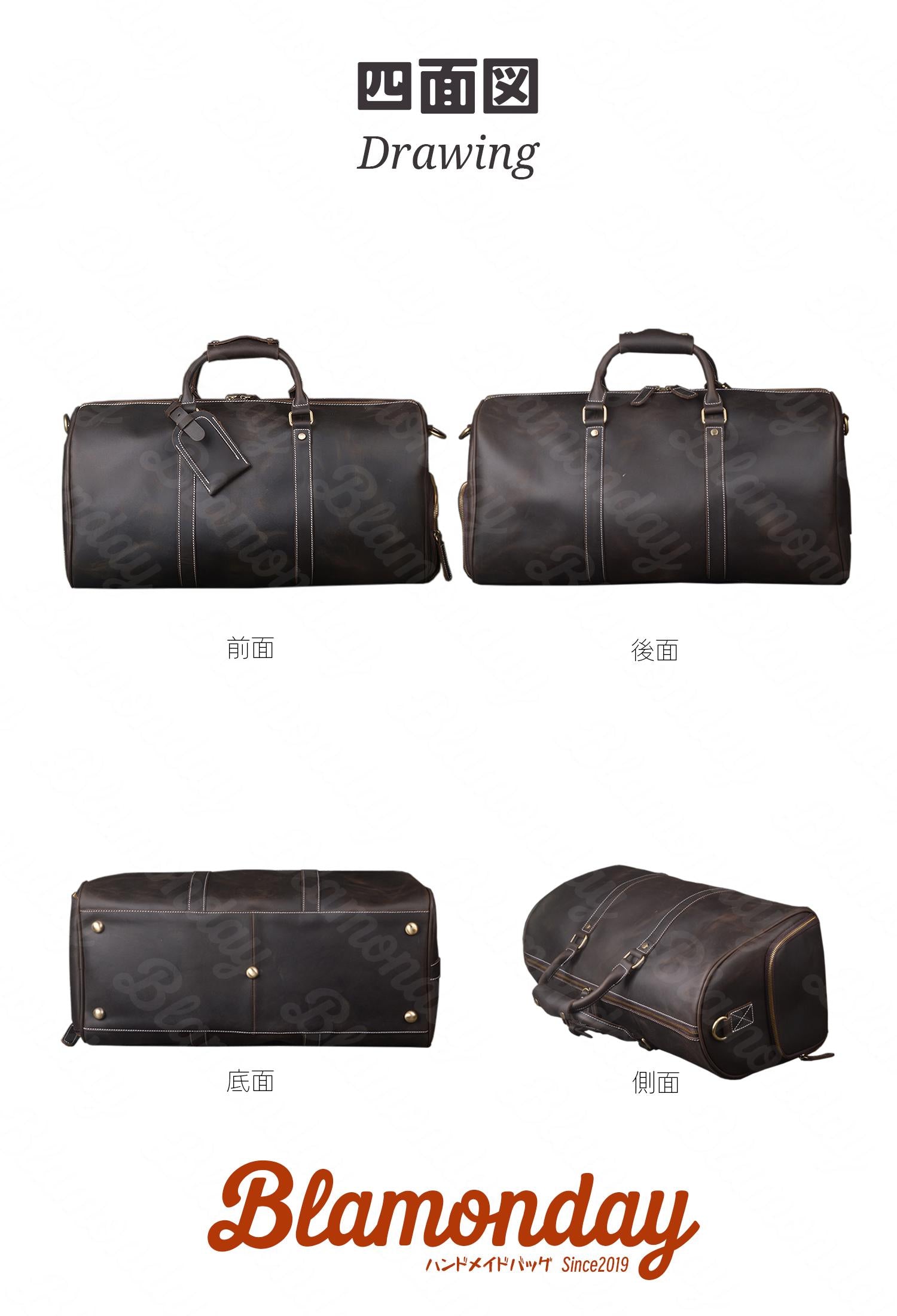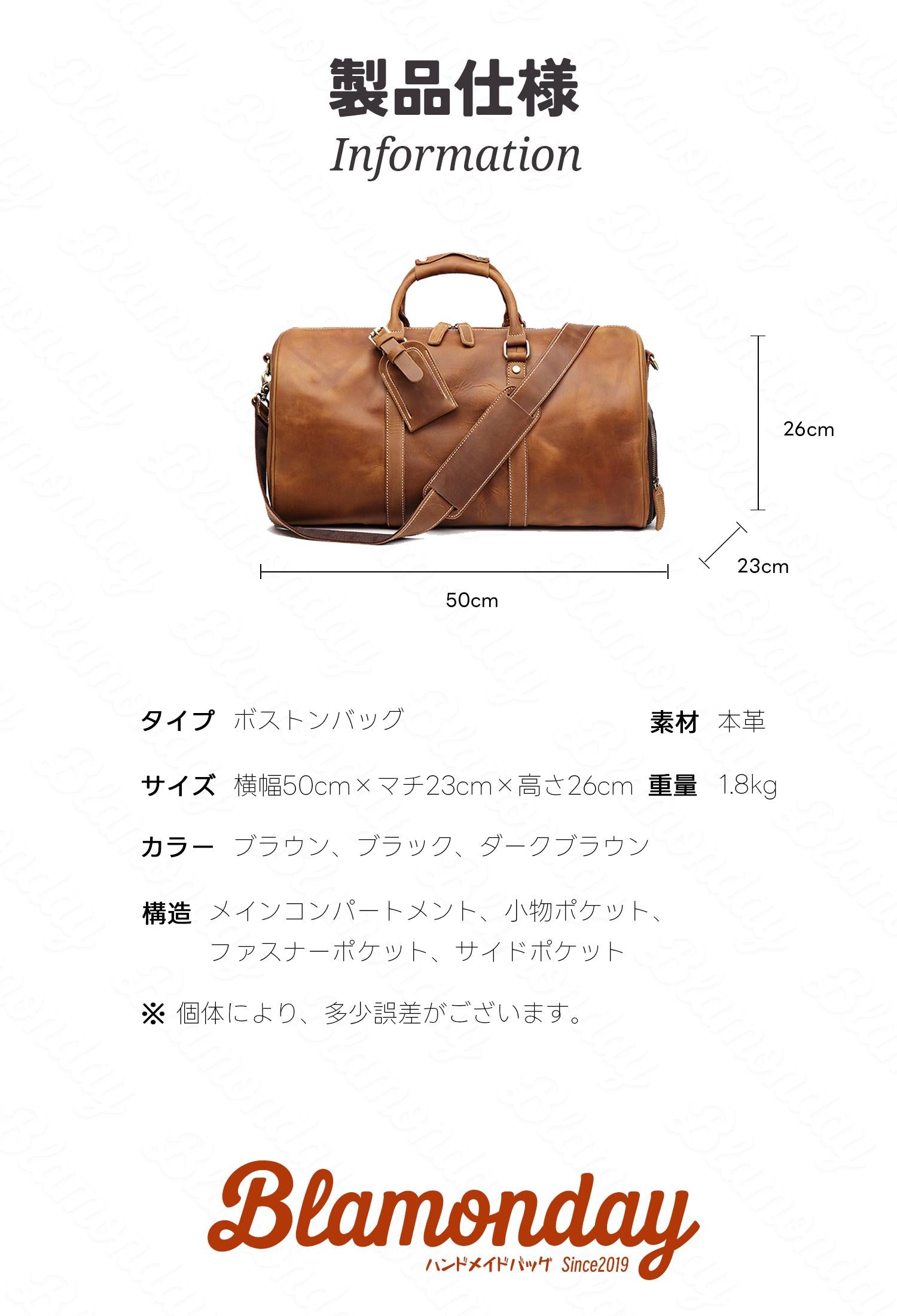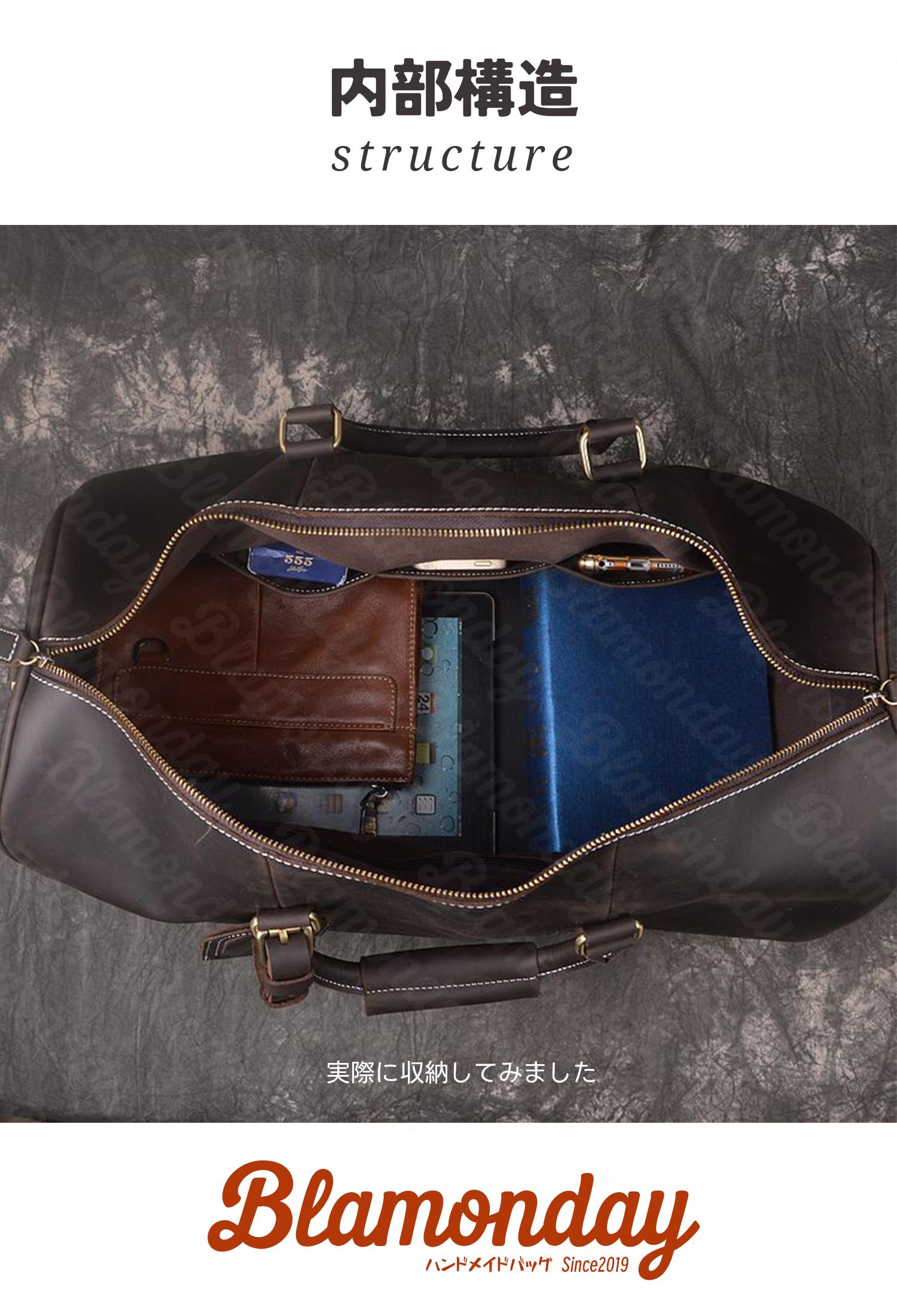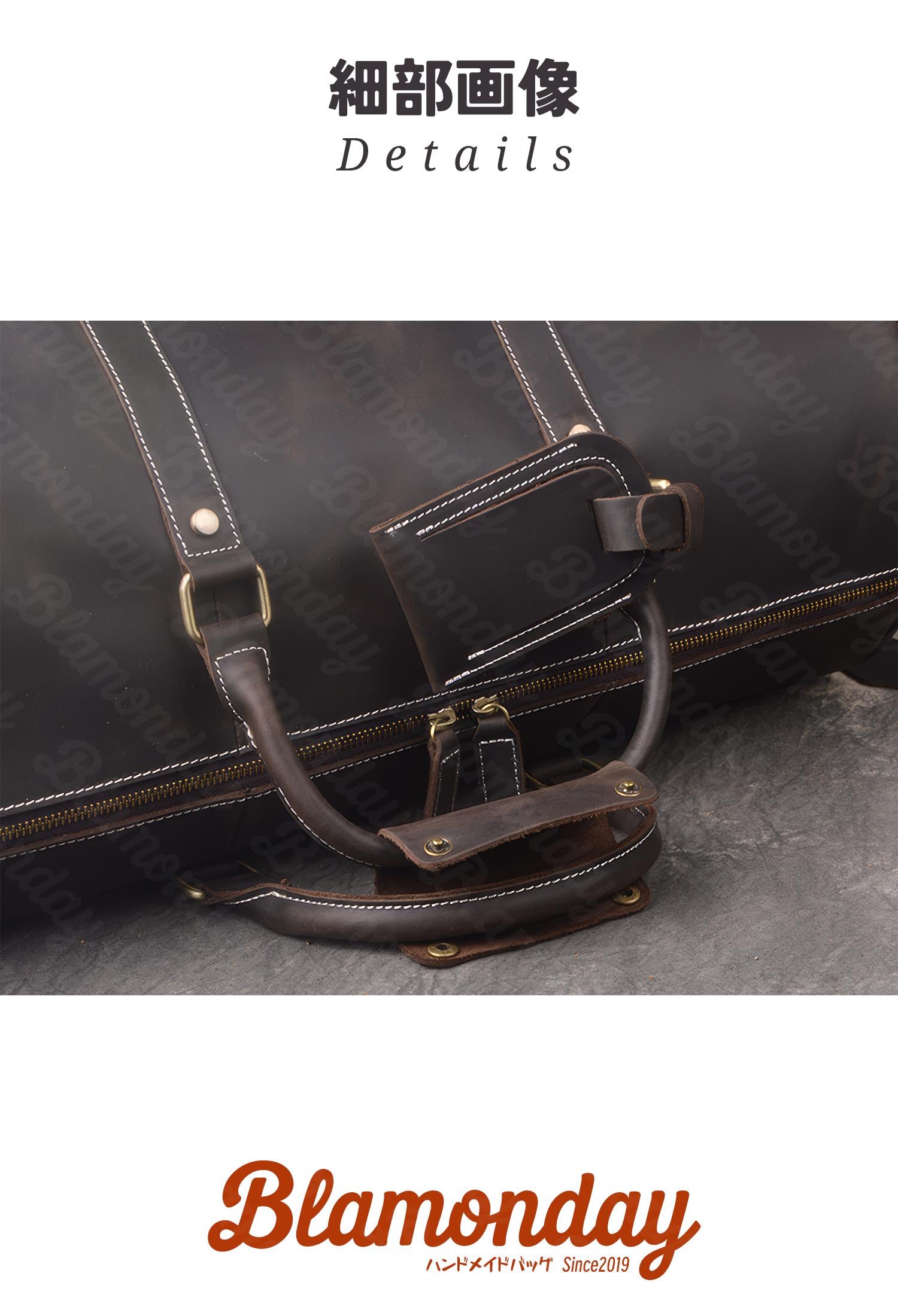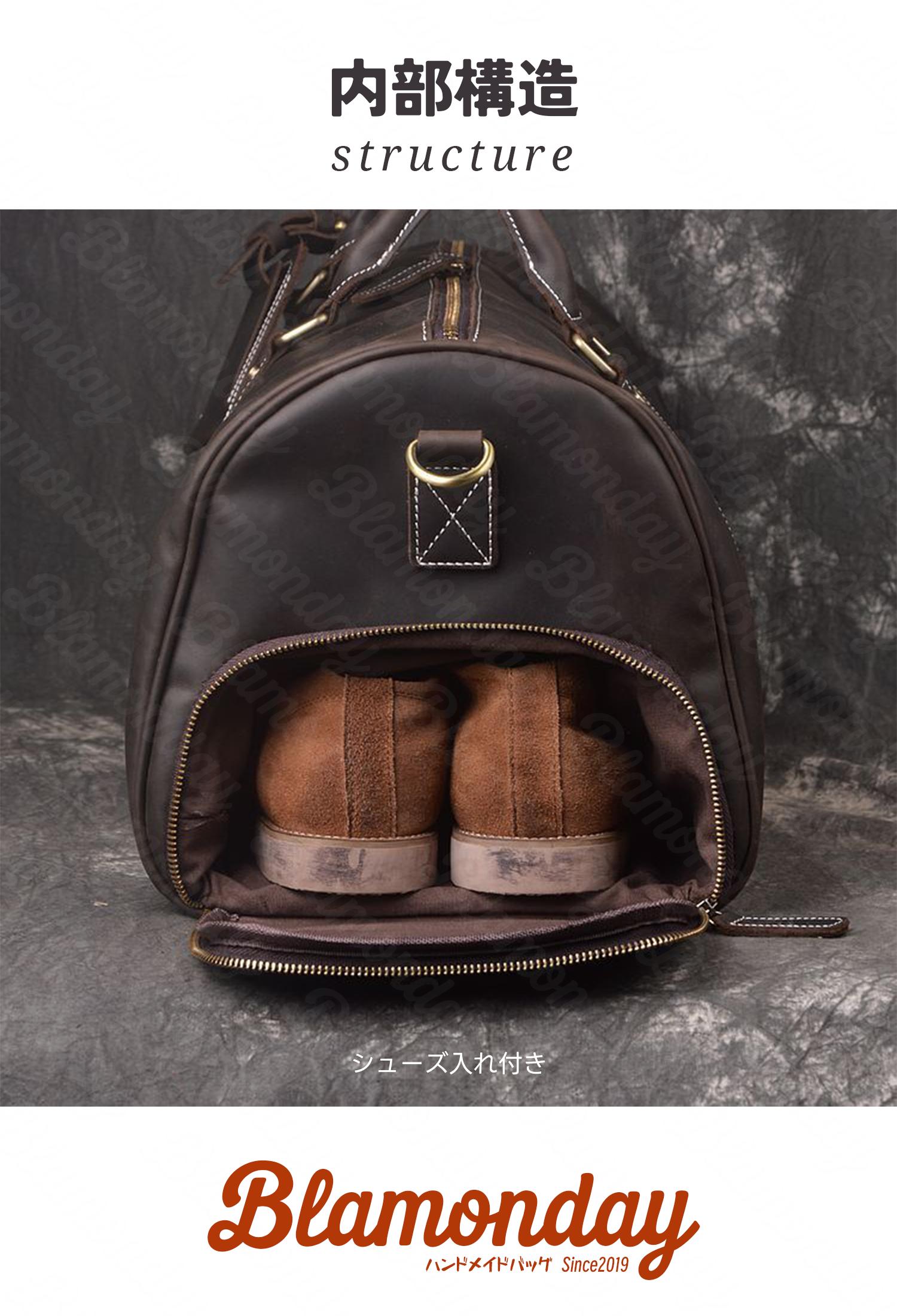 ボストンバッグ メンズ 本革 レトロ 大きめ 大容量 横型 カジュアル シューズ入れ付き 機内持ち込み 荷札 pc収納 2way ストラップ付き 肩掛け 無地 ファスナー 底鋲 MBZB-030