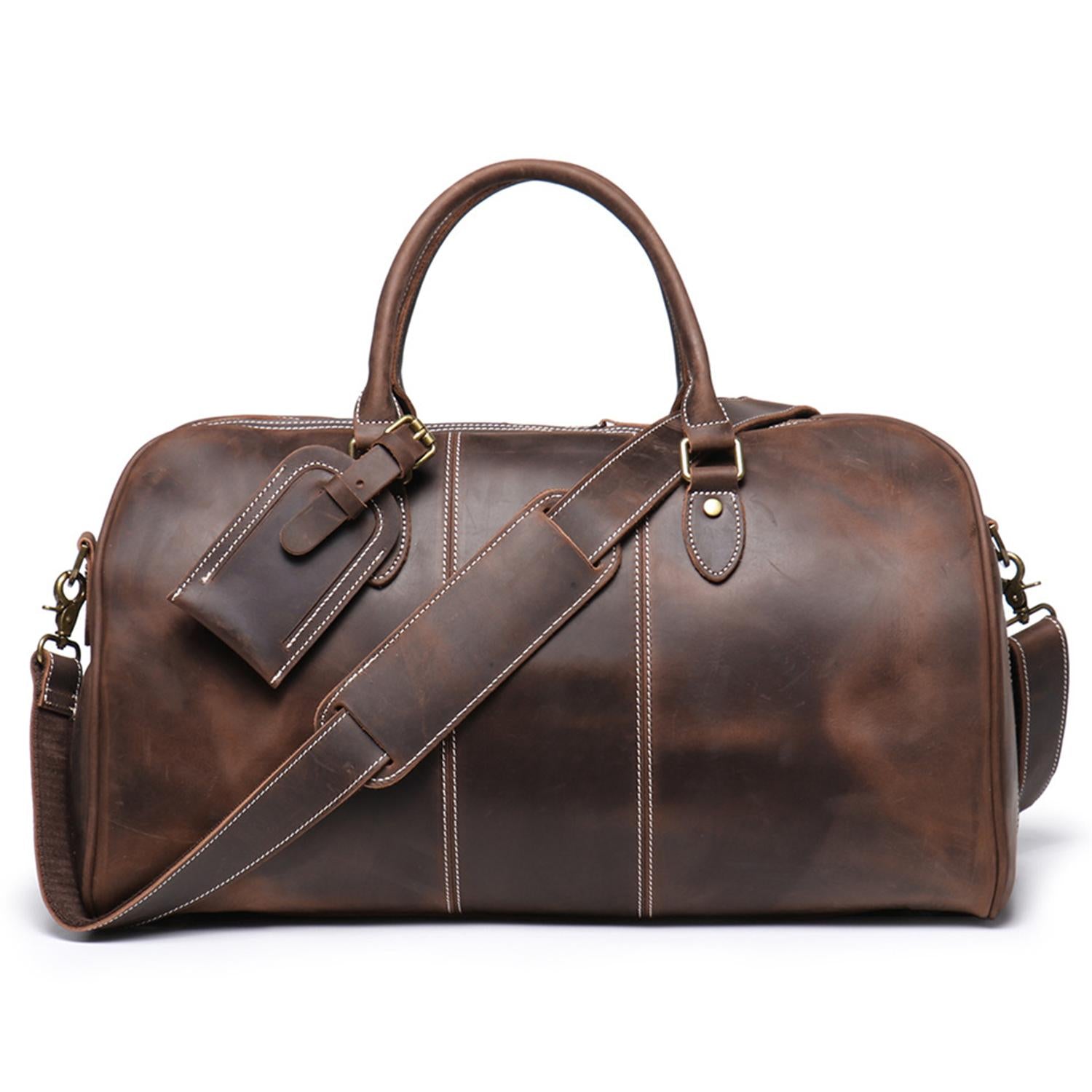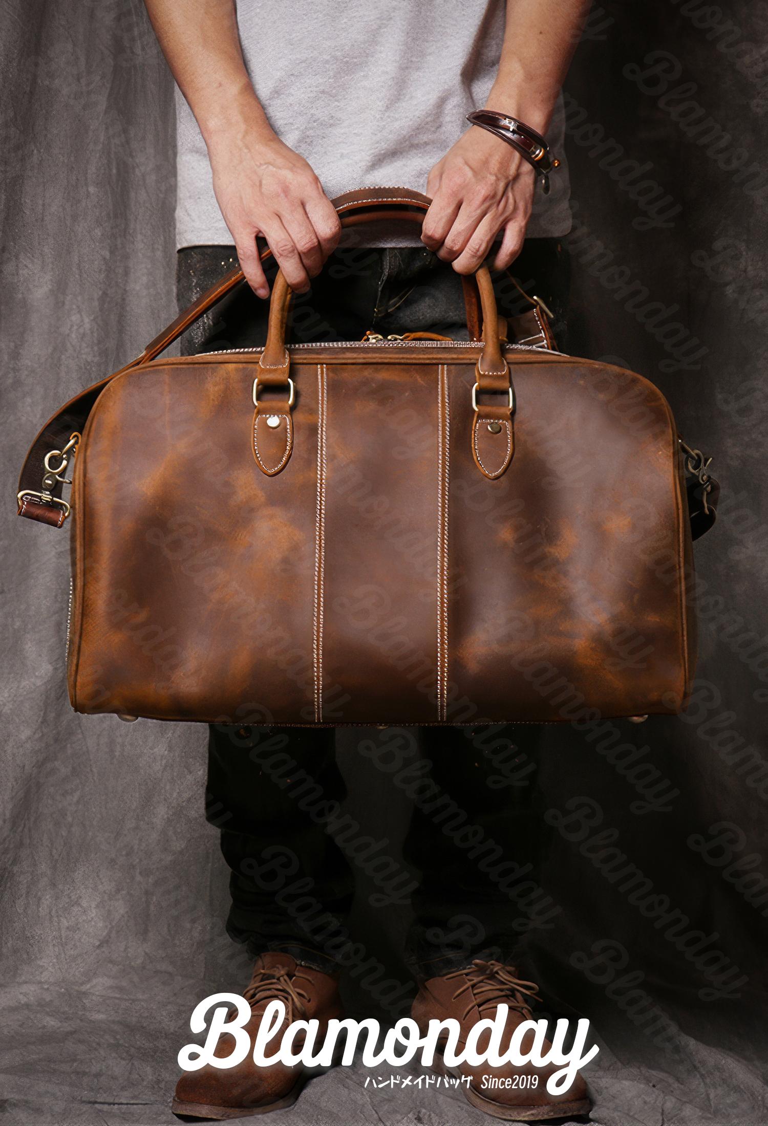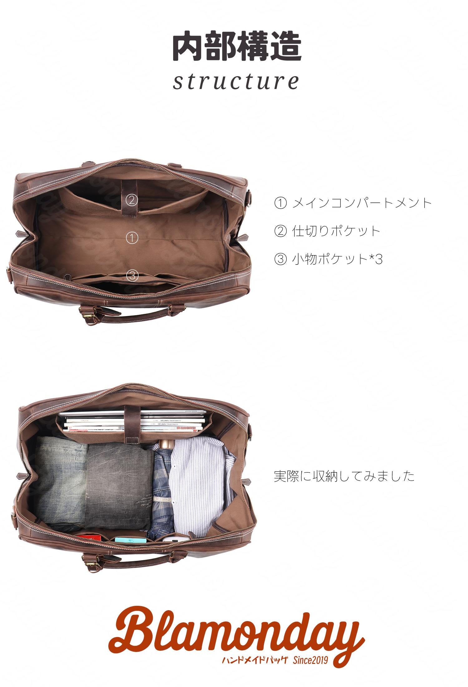 ボストンバッグ メンズ 本革 レトロ 大きめ 大容量 横型 カジュアル 機内持ち込み 荷札 pc収納 2way ストラップ付き 肩掛け 無地 ファスナー 底鋲 ダークチョコ MBZB-028