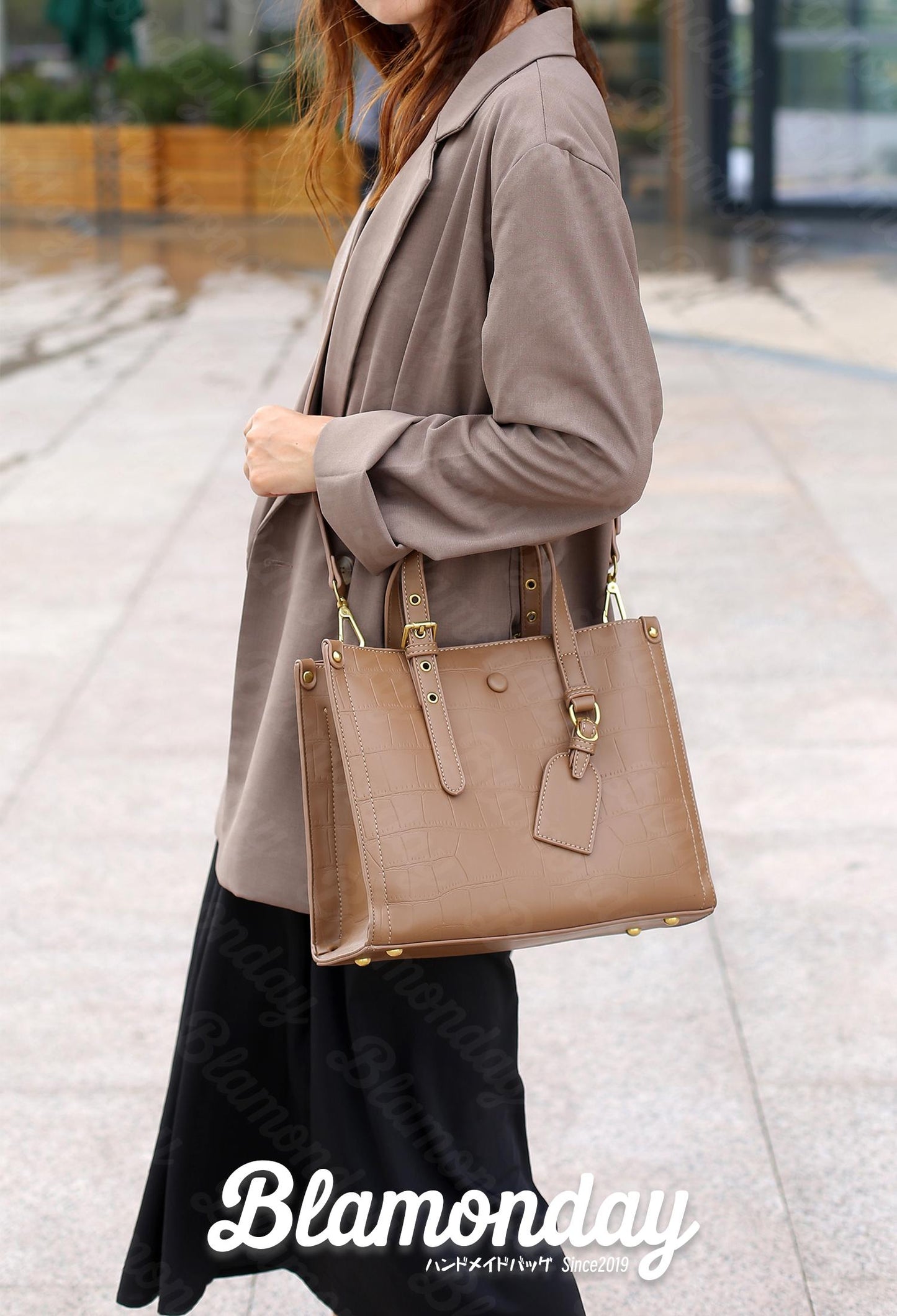レディース トートバッグ ワニ柄本革製 英国風 ショルダー ショルダーストラップ付き ファスナー付き 底鋲 軽量 防水 無地 おしゃれ カジュアル ビジネス シンプル 2way WTZB-125