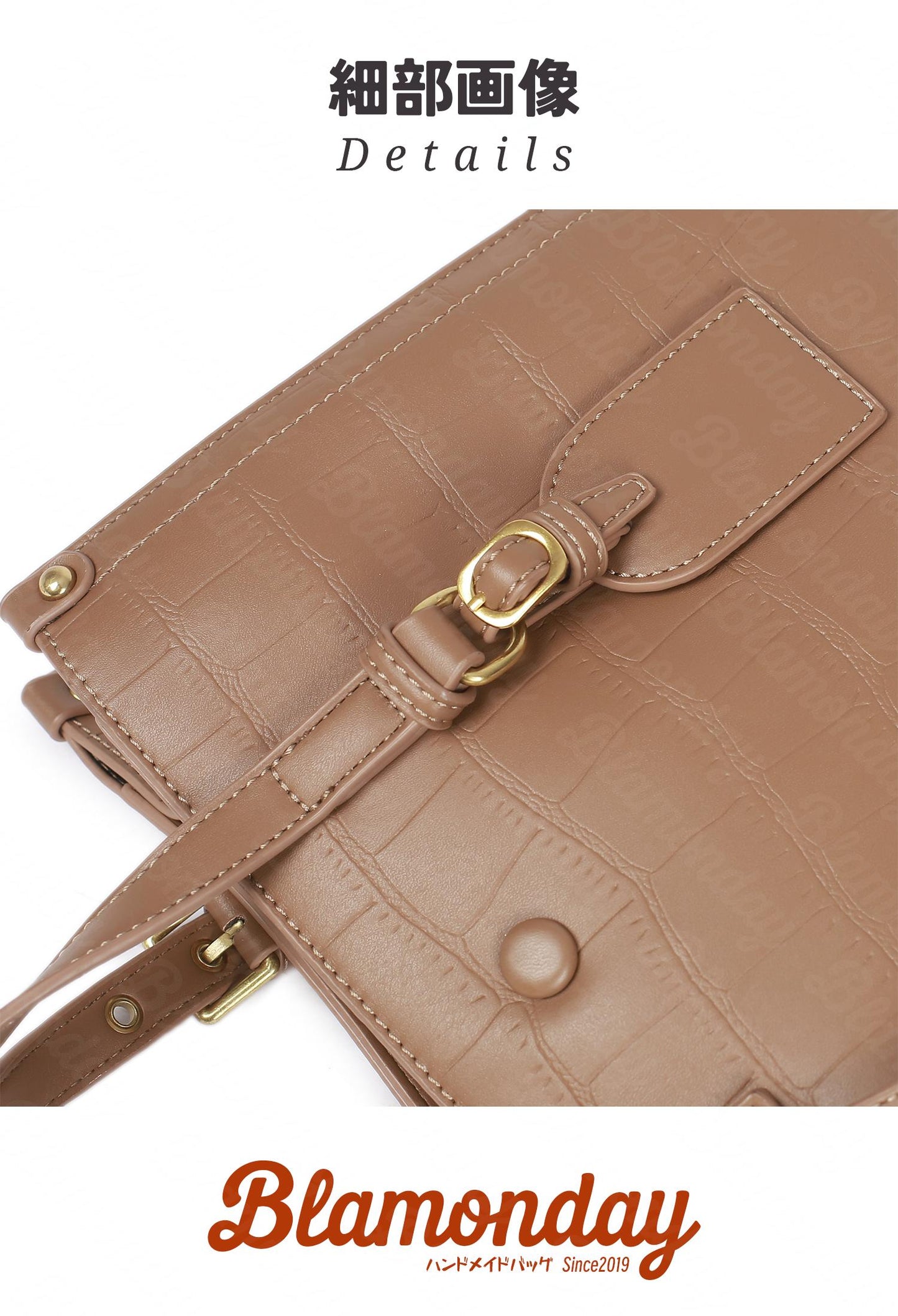 【収納力】携帯、財布、傘、化粧品、手帳等ものを収納可能です。取り外し可能なショルダーストラップが付き、小ぶりながら収納力にも優れているので使いやすさも魅力。