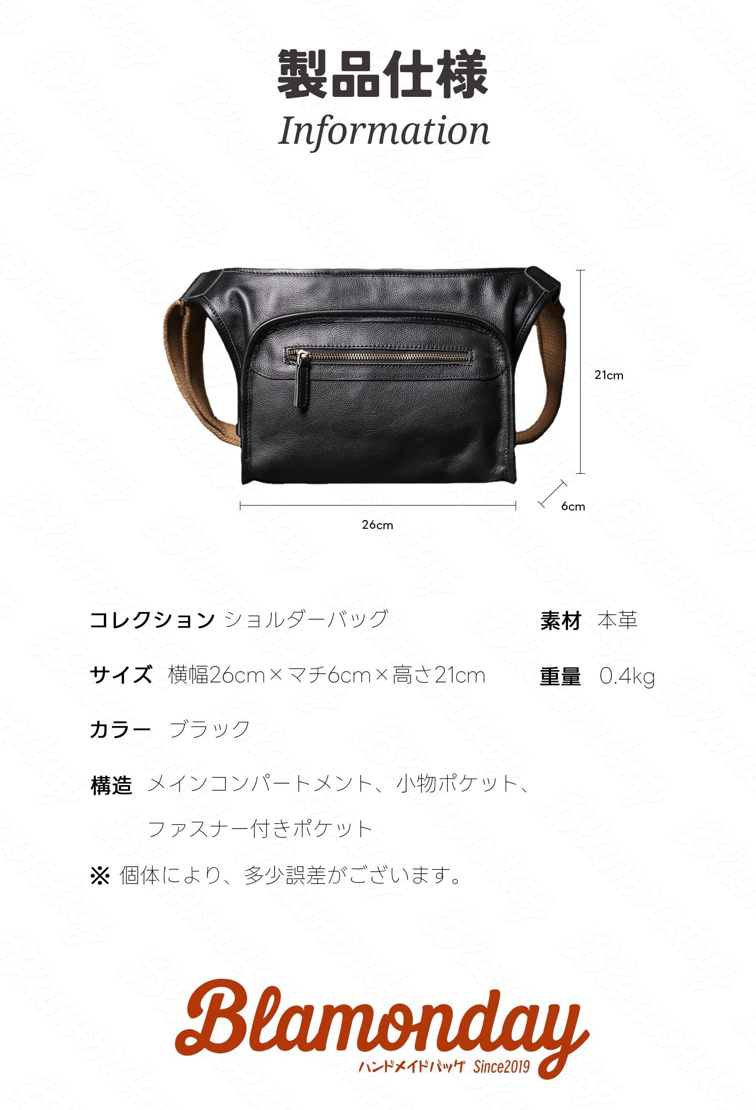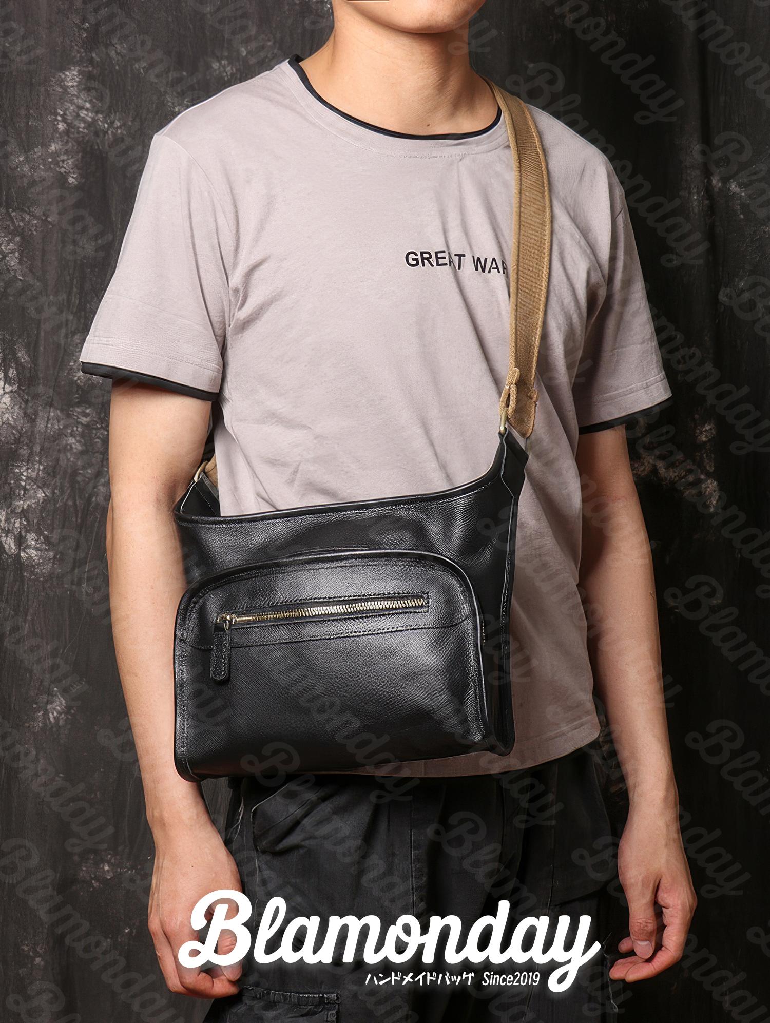 [BLAMONDAY] ショルダーバッグ メンズ 本革 斜めがけバッグ 大きめ 大容量 横型 軽量 おしゃれ カジュアル スポーツ アウトドア 旅行 無地 ファスナー MDZB-007