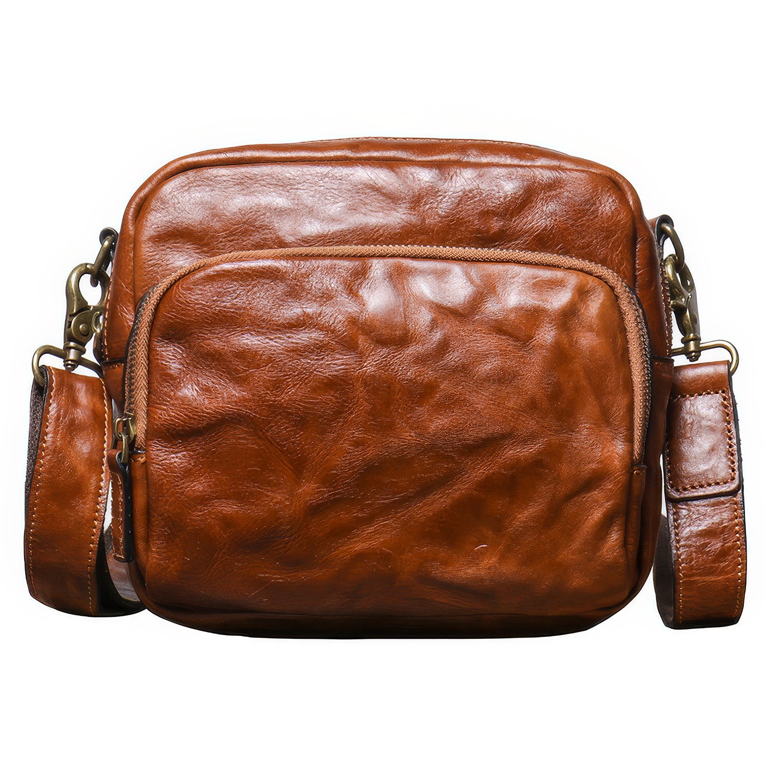 [BLAMONDAY] ショルダーバッグ メンズ 本革 肩掛け ヌメ革 レトロ 小さめ 横型 軽量 おしゃれ カジュアル アウトドア 旅行 無地 ファスナー ポケット多い MDZB-047