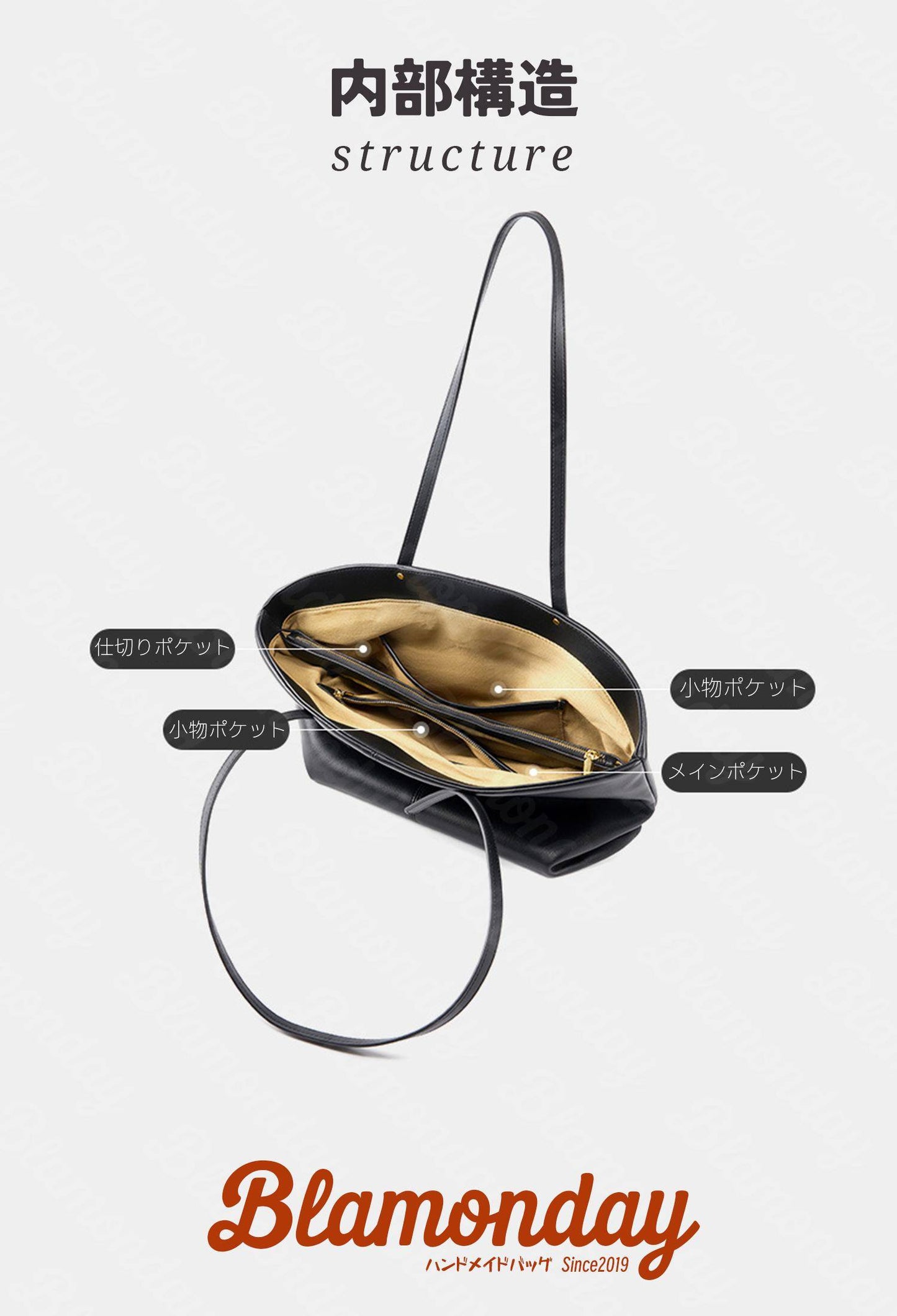 BLAMONDAY トートバッグ レディース 本革 大きめ 大容量 カジュアル アウトドア 横型 無地 ファスナー 仕切り WTZB-032