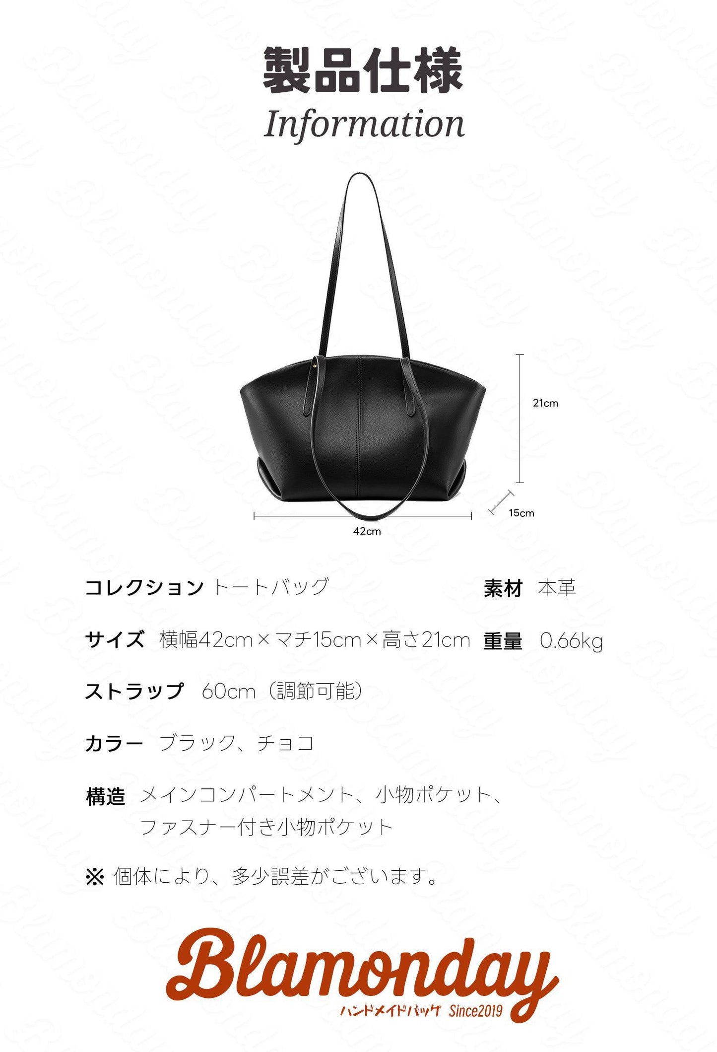 【トートバッグ仕様】 サイズ:横幅42cm×マチ15cm×高さ21cm。重さ:0.66kg。